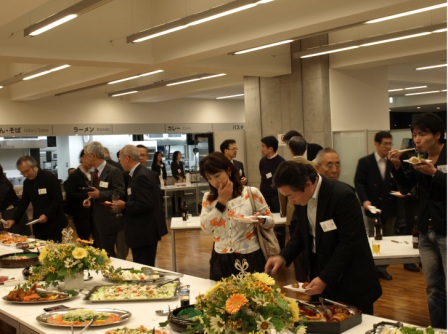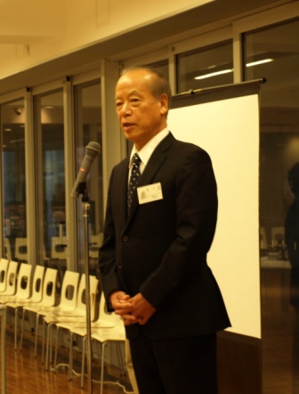 第2部の懇親会は昨年と同じ馬車道で開催。今年初頭に亡くなられた菊竹先生 を映像で偲んだあと、中川会長のご挨拶、村松前会長の御発声による乾杯でス タート。